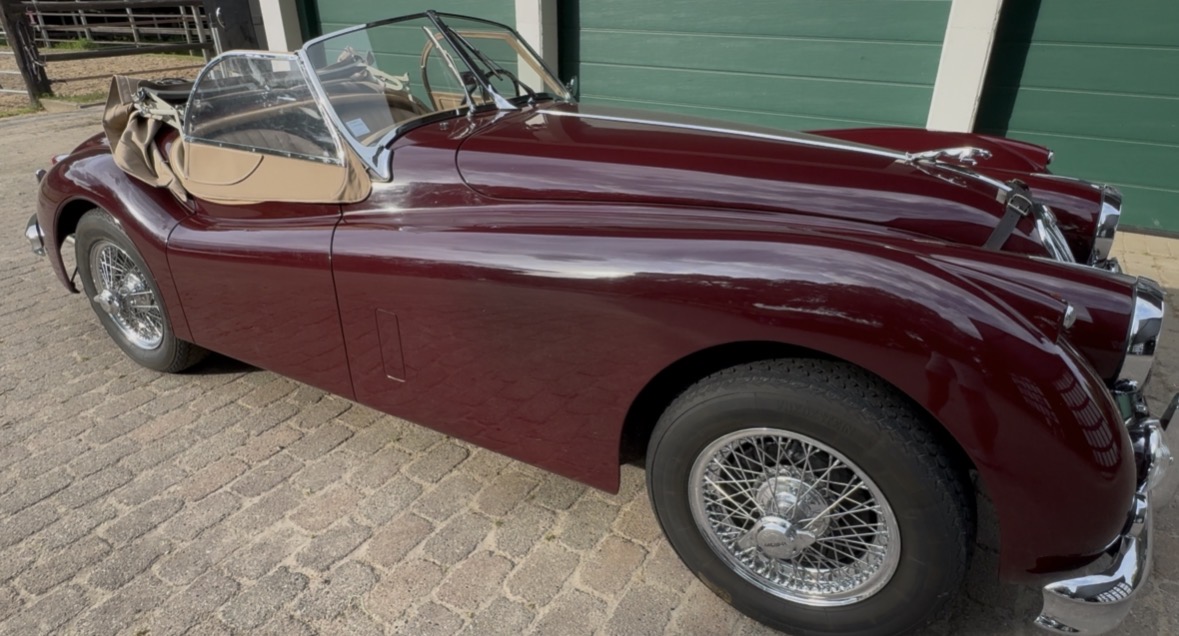 Dieser Jaguar XK 140 S Roadster hat einen 6-Zylinder-Motor mit 3.442 ccm Hubraum. Sein Gewicht beträgt nur ca. 1.350 kg. Am 8.10.2006 holte der aktuelle Besitzer den Wagen in Düsseldorf ab und brachte ihn mit dem Autozug nach Mougins.